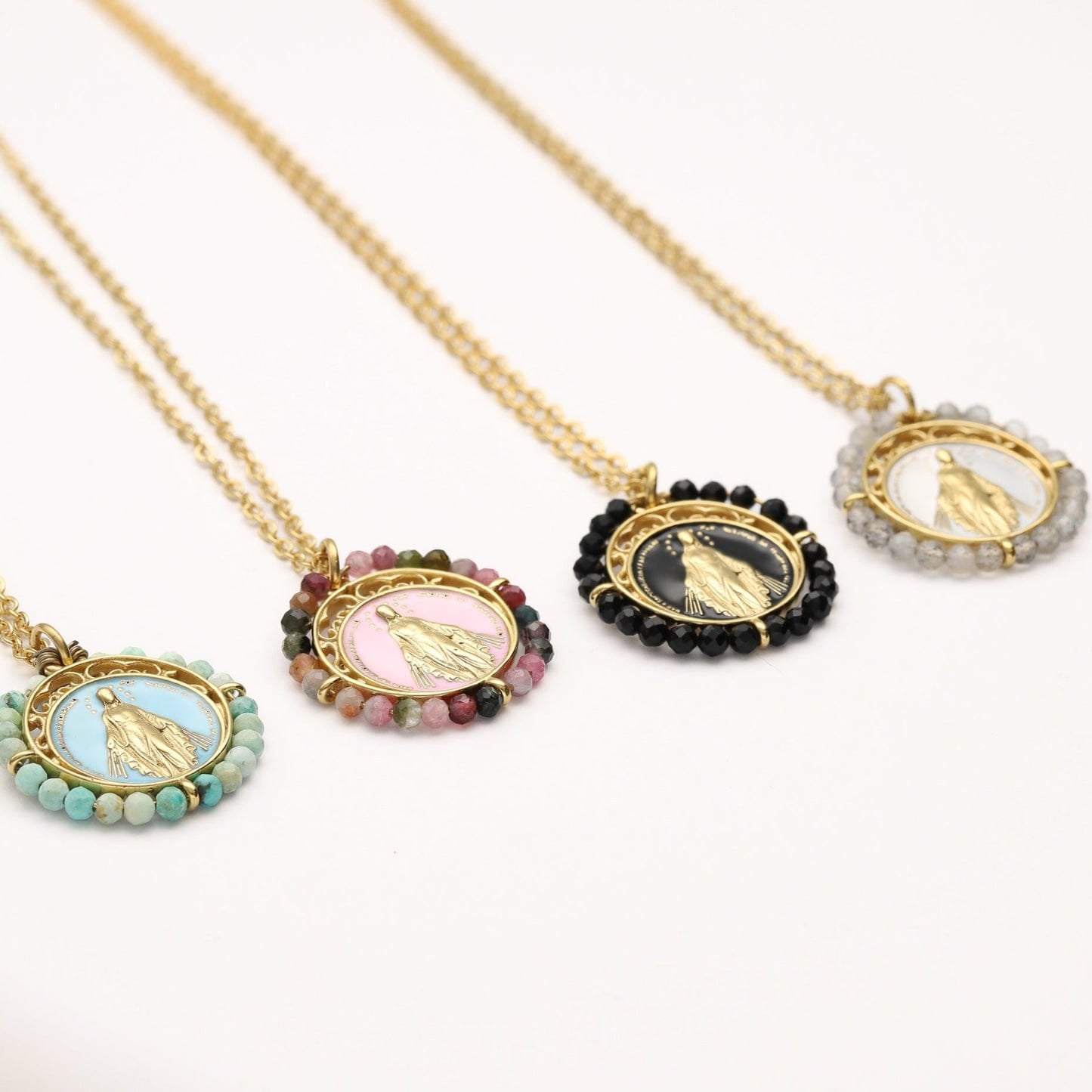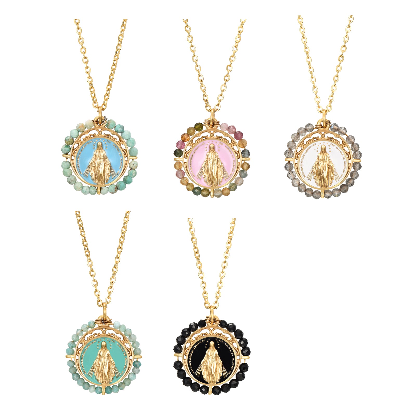 Collar de la Virgen María en acero inoxidable de alta calidad que combina elegancia y durabilidad.