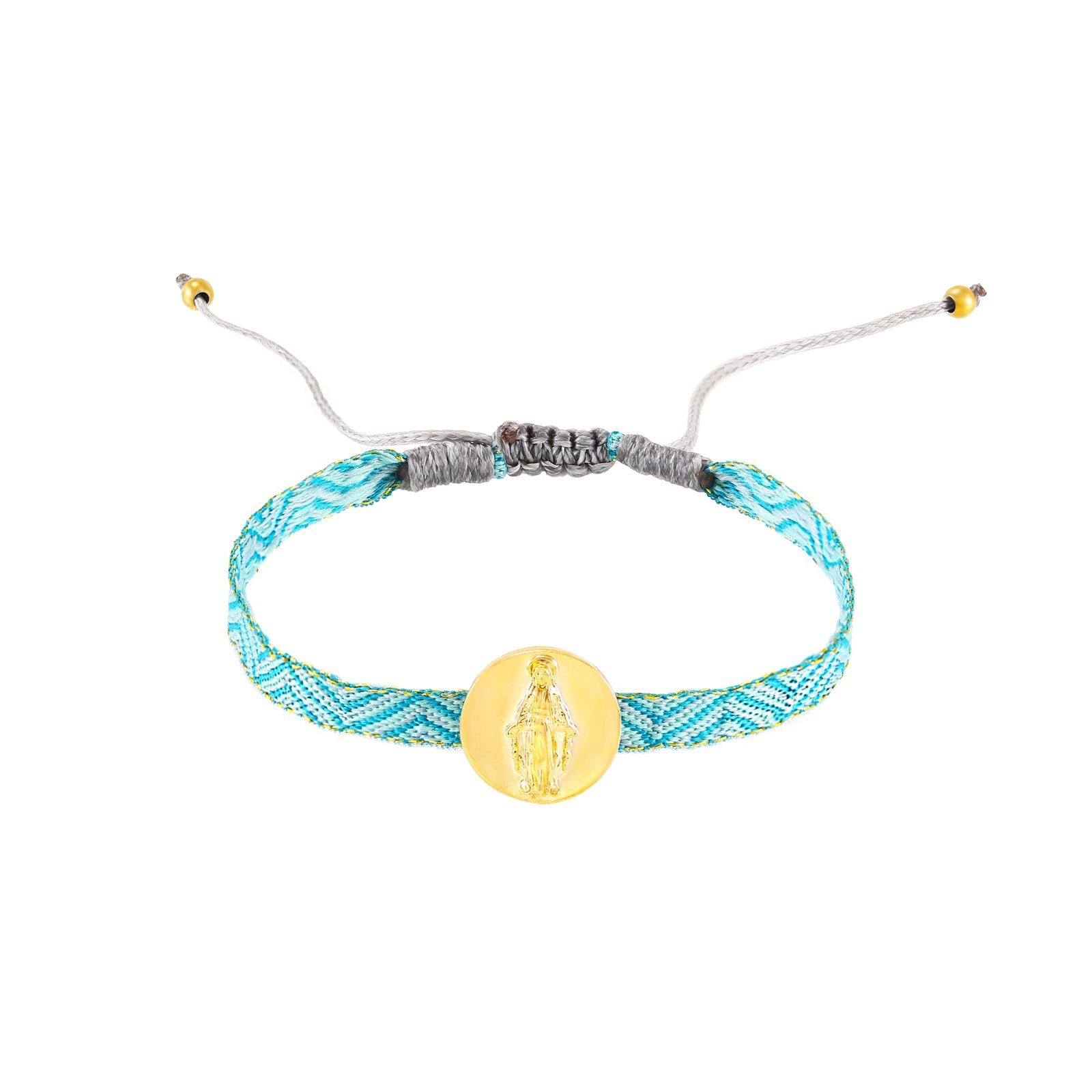 Su cinta textil es suave, resistente y totalmente ajustable, perfecta para el día a día. La medalla dorada de la Virgen Milagrosa está delicadamente grabada, aportando un toque especial lleno de significado.